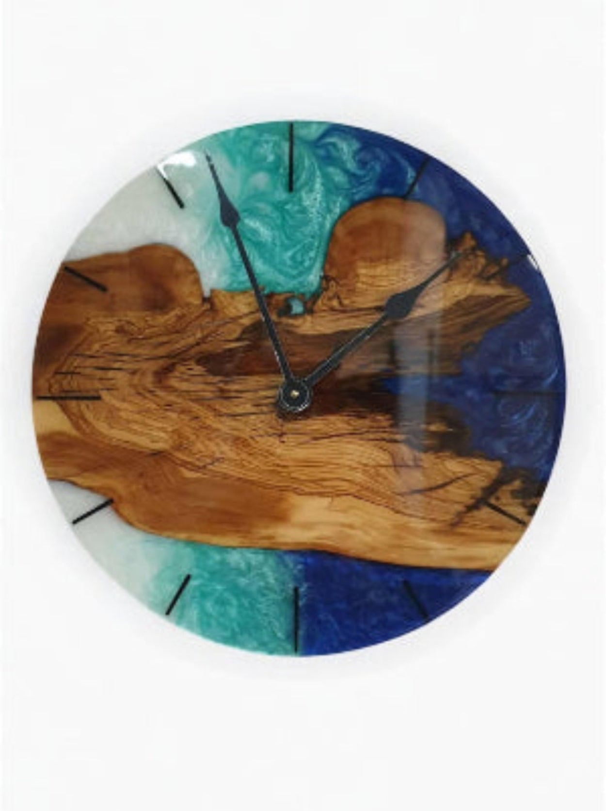 Each piece showcases unique artistry, merging natural wood with stunning resin accents.